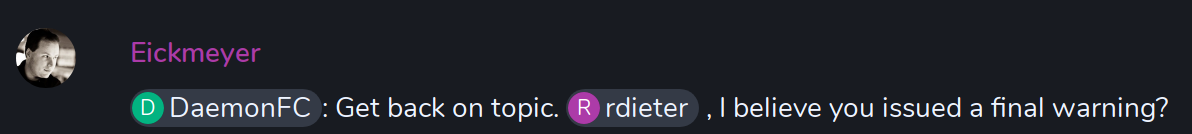 | -viera/#boycottnovell-social-Dr. Roy Schestowitz (罗伊): In this increasingly crazy atmosphere of mass sanctioning & permanent banning (removing everything or everyone that’s perceived to be impolite) even “Linux” forums are banning people who point out Microsoft being a rogue corporation that’s attacking Linux ... [https://pleroma.site/objects/b60203ed-3534-4c7f-b828-3c5a6f56d16c] | Jul 13 23:16 | |