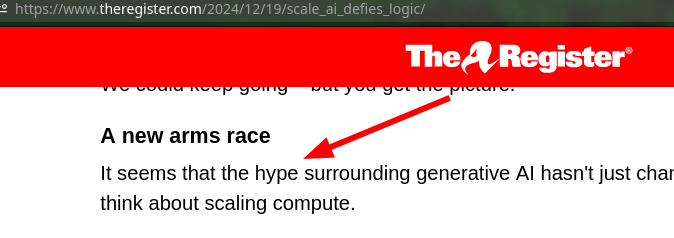 WITHOUT naming any particular Web site (there are so many culprits in that respect), let's just say that many decent people continue to play on/along with this bogus narrative of "Hey Hi (AI) arms race" and "era/age of Hey Hi" and "Hey Hi Revolution". I know for sure (they tell me so) that some of those sites' editors know too well what they're doing. They know it's hype, but they participate in it regardless. They do so for profit or clickbait. This sort of "logic" will harm their credibility in the long run. It'll help the bubble though.