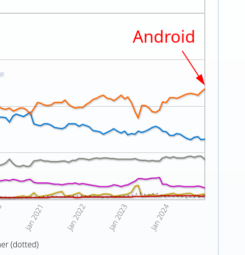 2024 a Record Year for Android (Almost 50% "Market Share"), Which is Now Bigger in Europe Than Microsoft Windows
