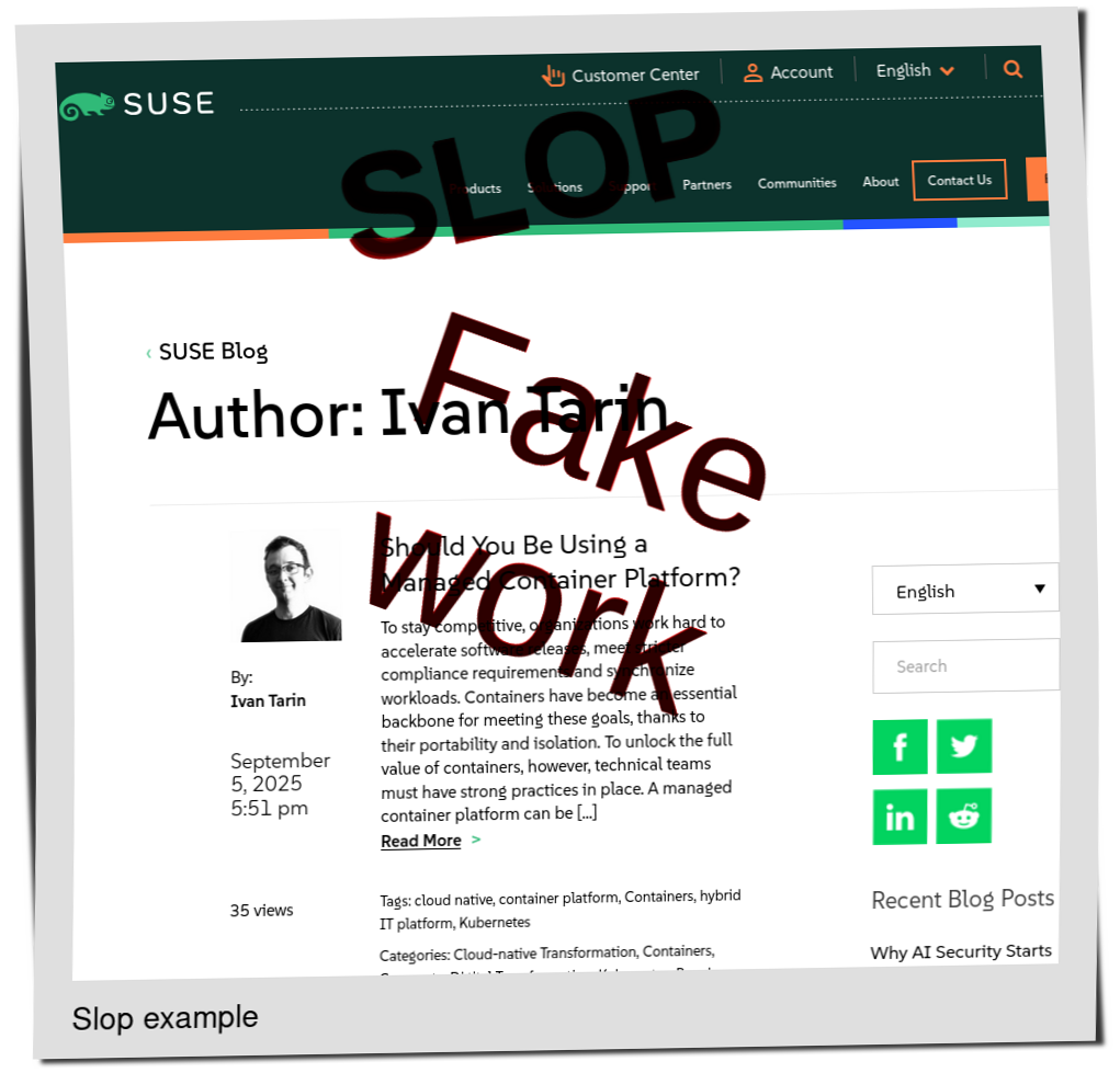 Official SUSE Blog Still Uses LLM Slop (Bots) to Make Fake Articles (Marketing)