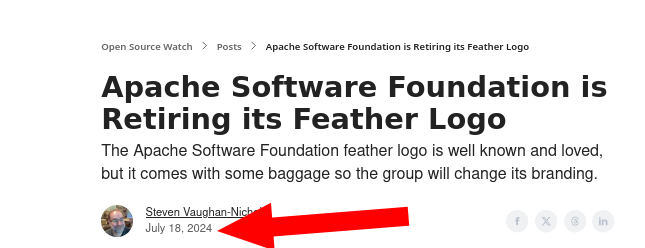 The Apache Software Foundation (ASF) blog has introduced "The ASF’s New Logo", which is hardly a surprise. This report is over a year old: