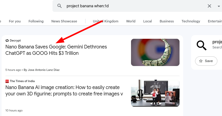This is what happens when I search for "project banana" in Google.co.uk (or .com but localised):