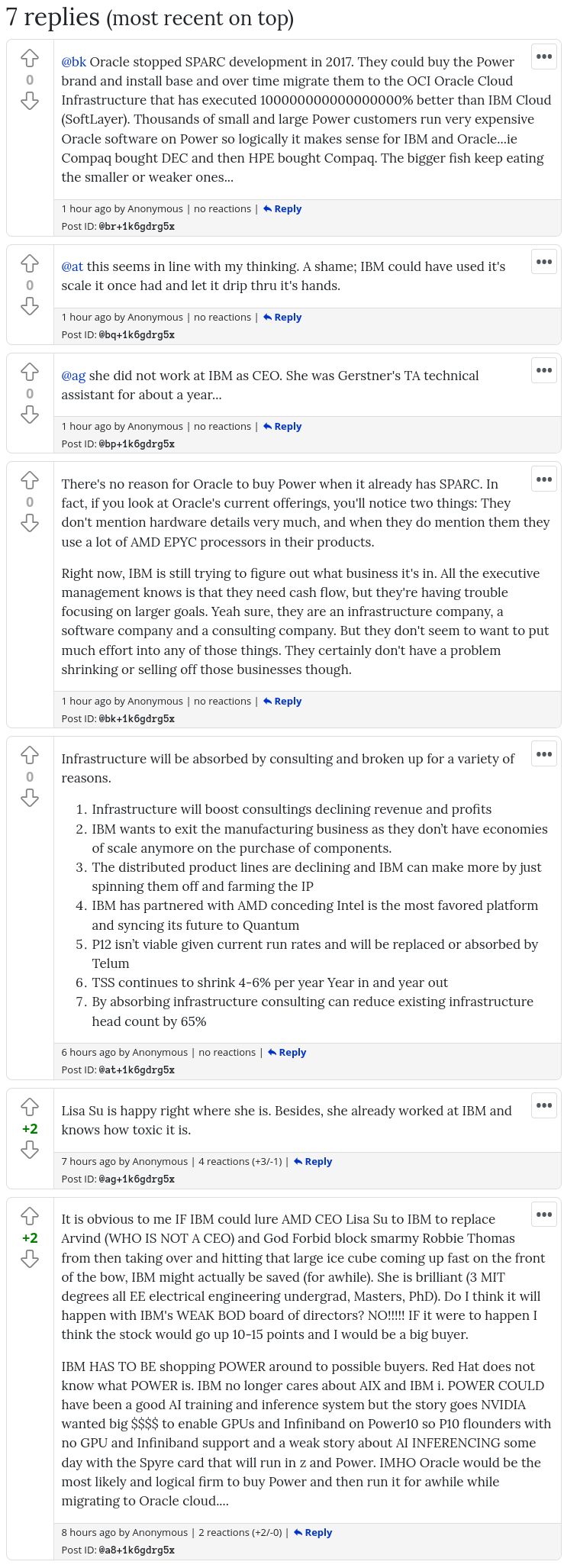 "Lisa Su is happy right where she is," an earlier comment said. "Besides, she already worked at IBM and knows how toxic it is."