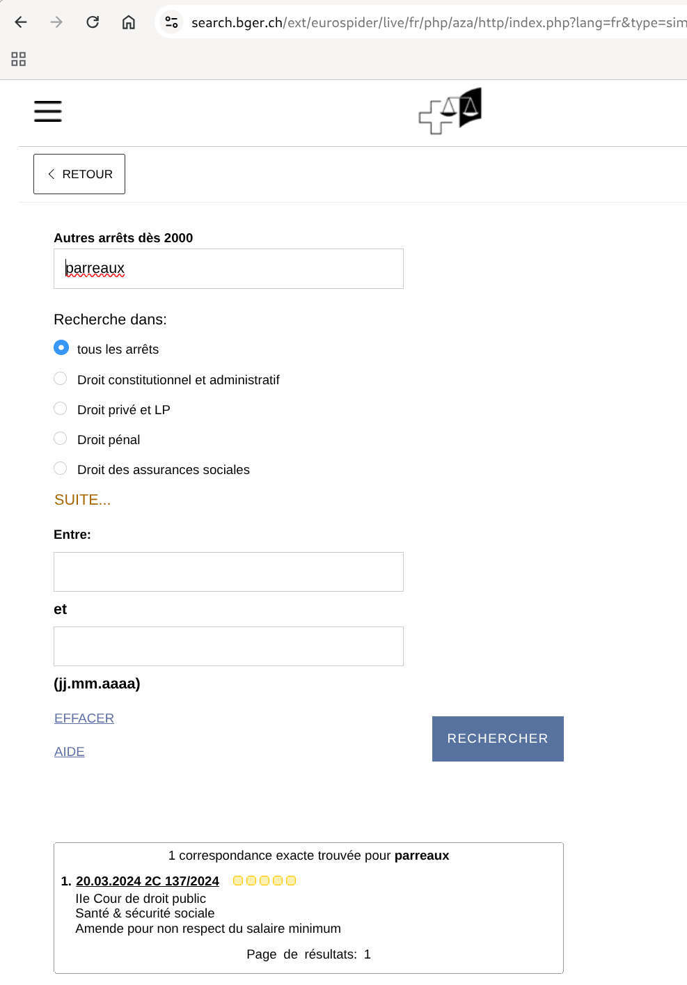 The result is a single case: 20.03.2024 2C 137/2024: penalty for failure to respect minimum salary. (Amende pour non respect du salaire minimum).