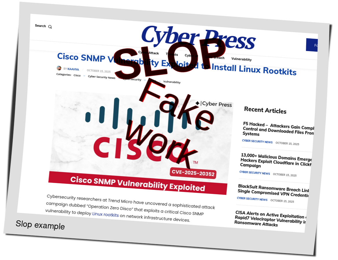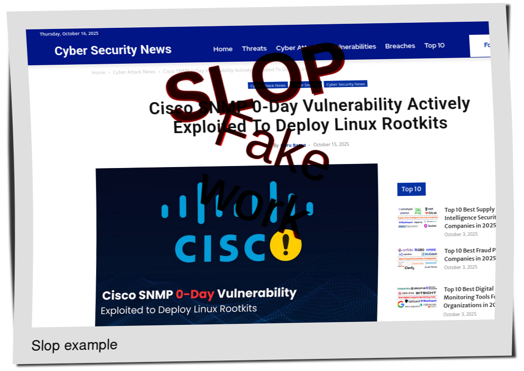 Over at Google News, pure slopfarms (fake text, fake images) show up speaking about "Linux Rootkits":