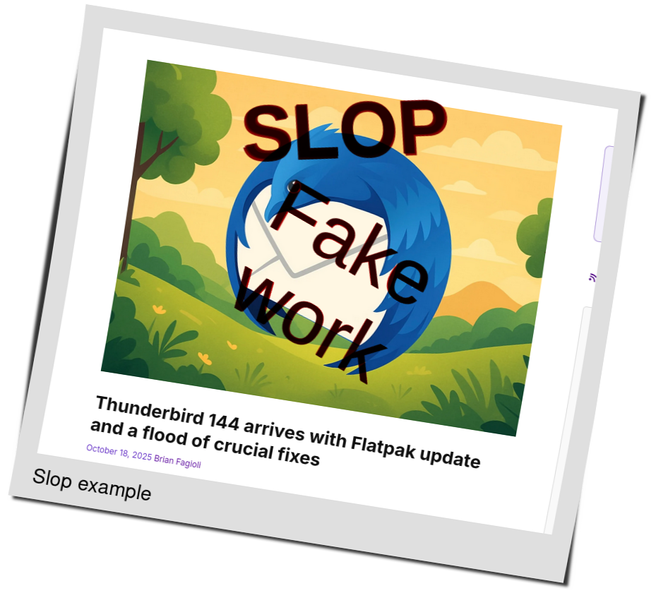 The Serial Slopper Brian Fagioli is still at it, trying to override legitimate articles about Mozilla Thunderbird 144 with some LLM slop: