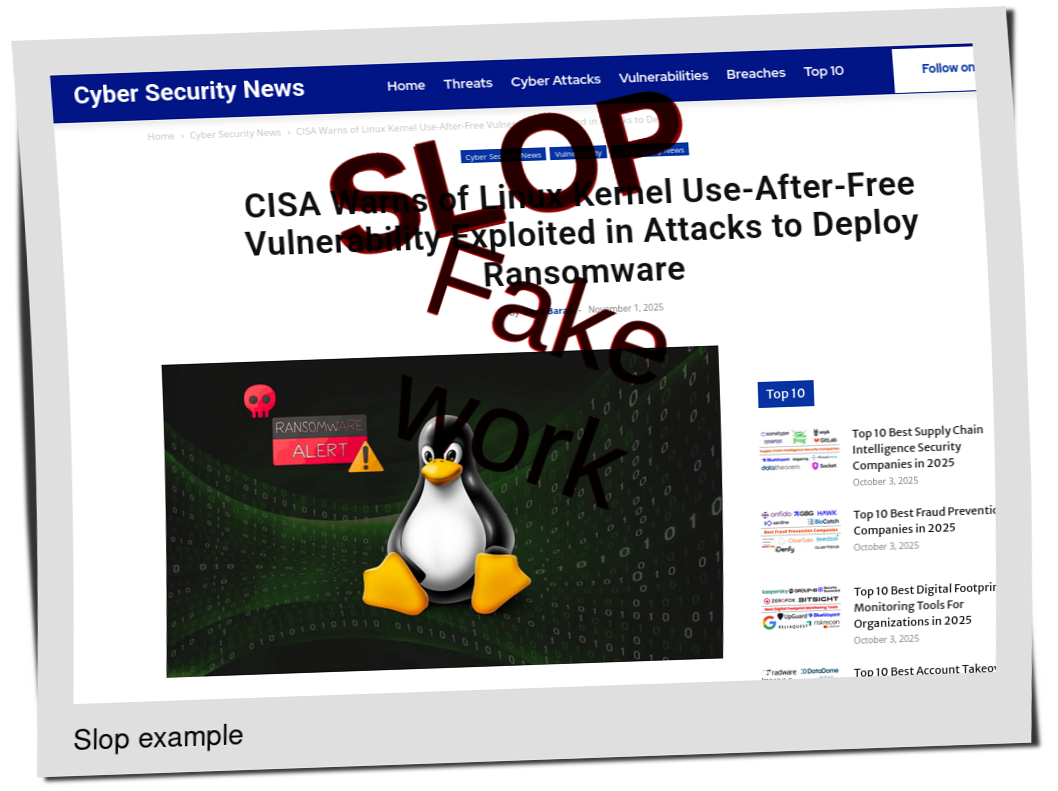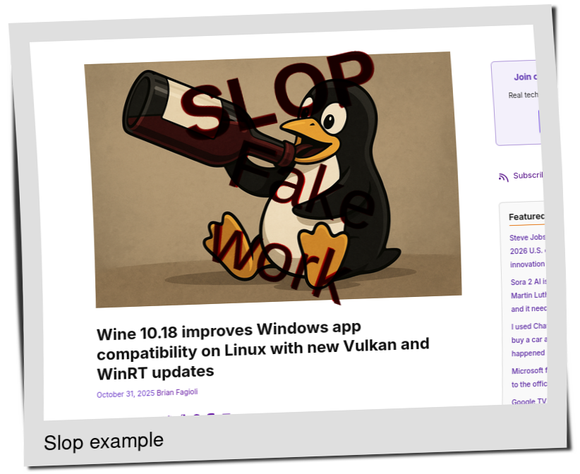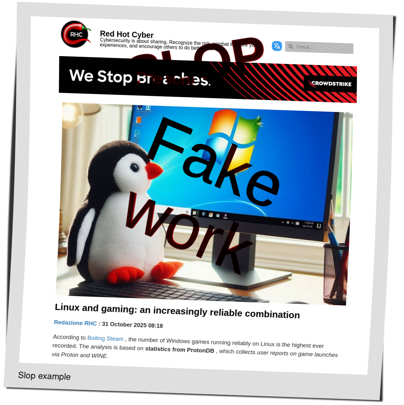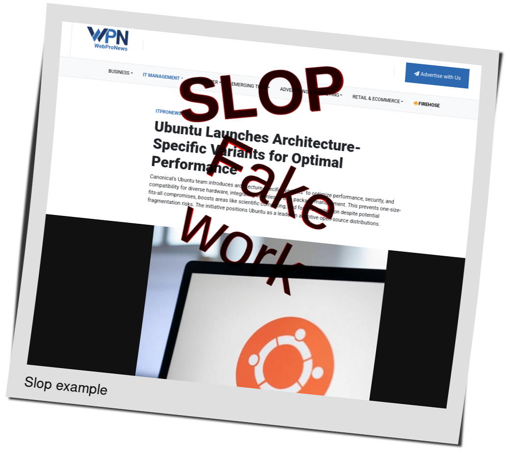 The Serial Slopper has already targeted "Linux" using fake articles on an almost daily basis: