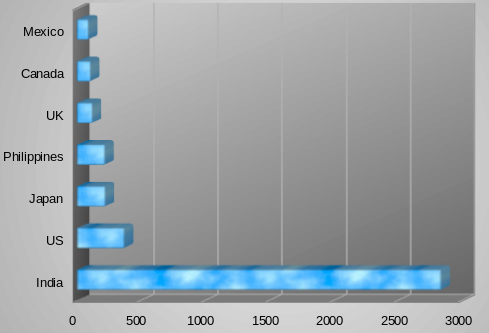 A new report says that "IBM presently has 2,840 job openings in India, 376 in the US, 228 in Japan, 225 in the Philippines, 127 in the UK, 112 in Canada, and 96 in Mexico."