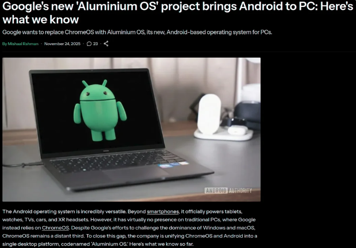 We don't exactly know what "Aluminium OS" is and whether it'll be like a "Linux distro", whether it will contain GNU, or whether it'll be another "systemd system" (i.e. GitHubware, proprietary). But as somebody put it 10 hours ago: