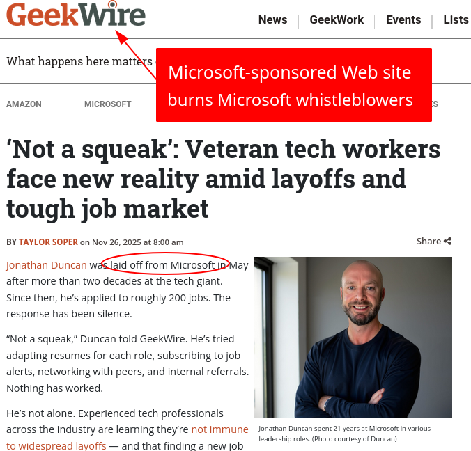 ![[Microsoft-sponsored Web site, burns Microsoft whistleblowers] ‘Not a squeak’: Veteran tech workers face new reality amid layoffs and tough job market](/i/2025/11/geekwire.png)