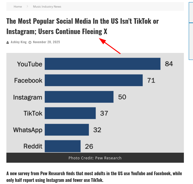 Notice that Twitter (now "X") isn't even in the list. It's irrelevant to so many people.