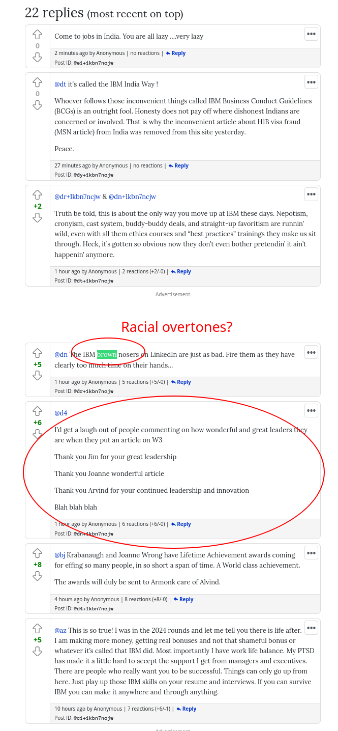 Earlier today: (this entire thread might get zapped soon, citing racism, which helps IBM delete or dismiss critics of the management)