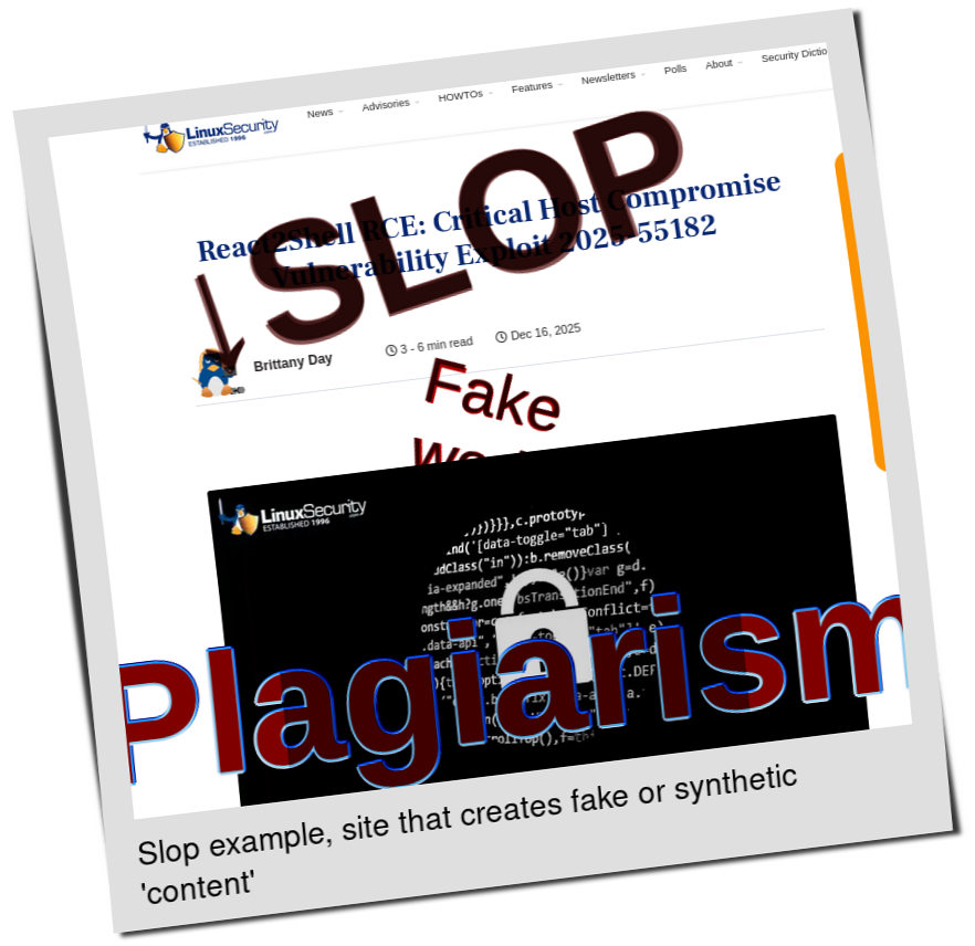 He basically let his site become a slopfarm. That's not going to work. No Linux site that became a slopfarm survived or thrived. They throw in the towel, sooner or later.