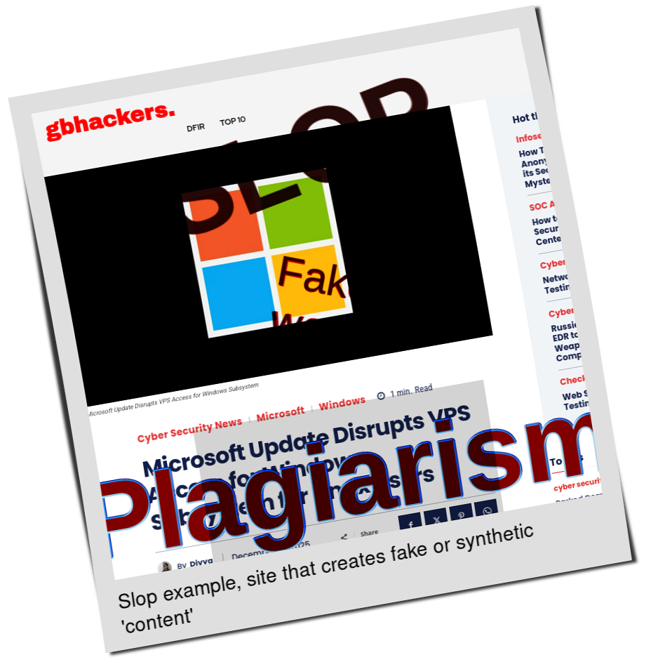 All the above 'sites' (slopfarms) are operated by the very same people. It's not quite enough for "Slopwatch", just something to keep abreast of. █