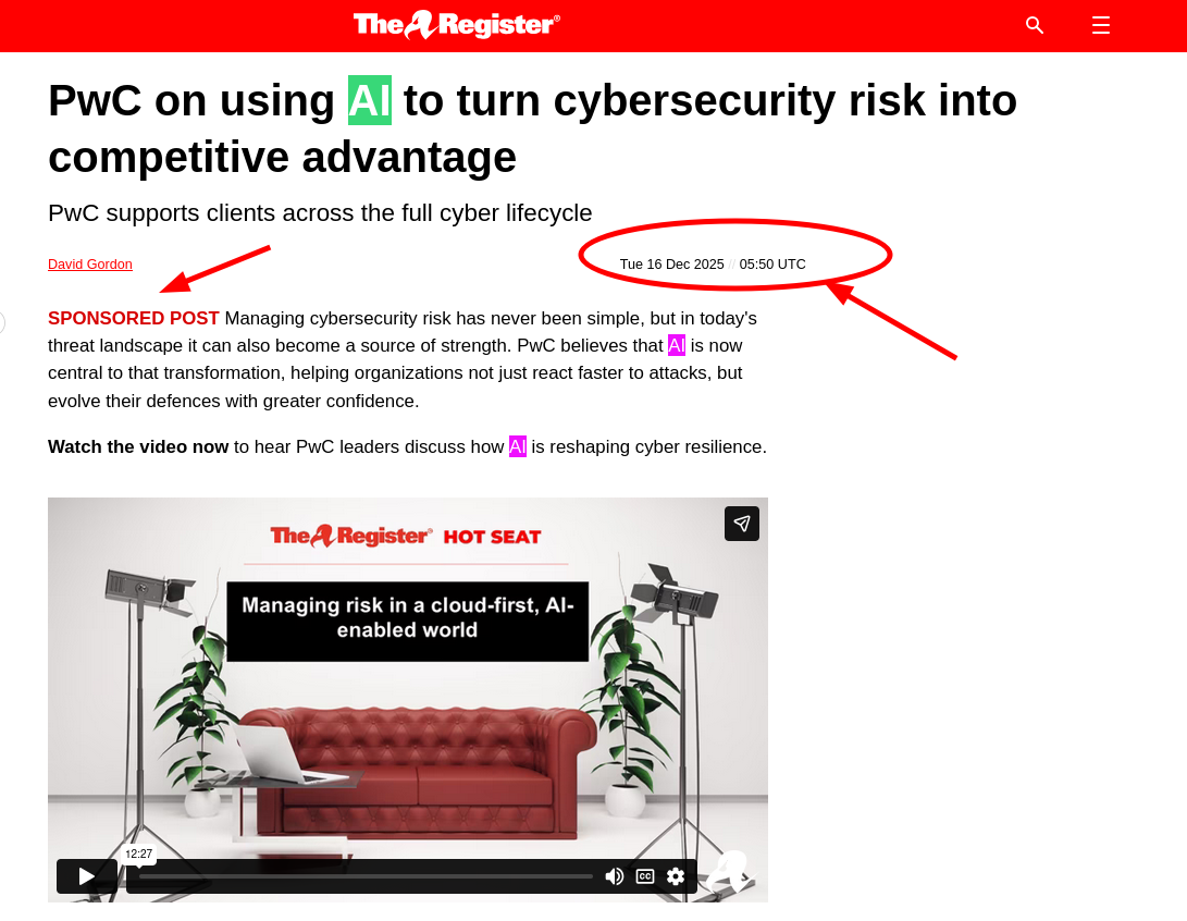 Yesterday we wrote about the latest "AI" spam from The Register MS. Shortly afterwards this thing turned up in the front page: