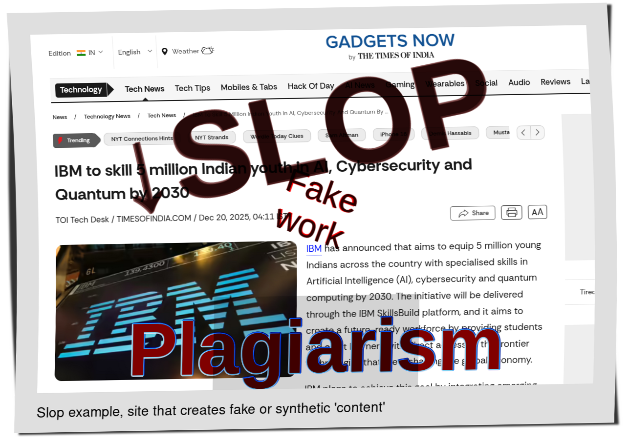 Last night we could see LLM slop/spam about IBM. Hours later we saw more of the same from another site that had resorted to LLM slopping (this is confirmed):