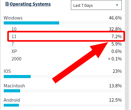 Well, yesterday we said that when workers are away at home the "market share" of Vista 11 seems to fall to 10%. Today it says 7%!