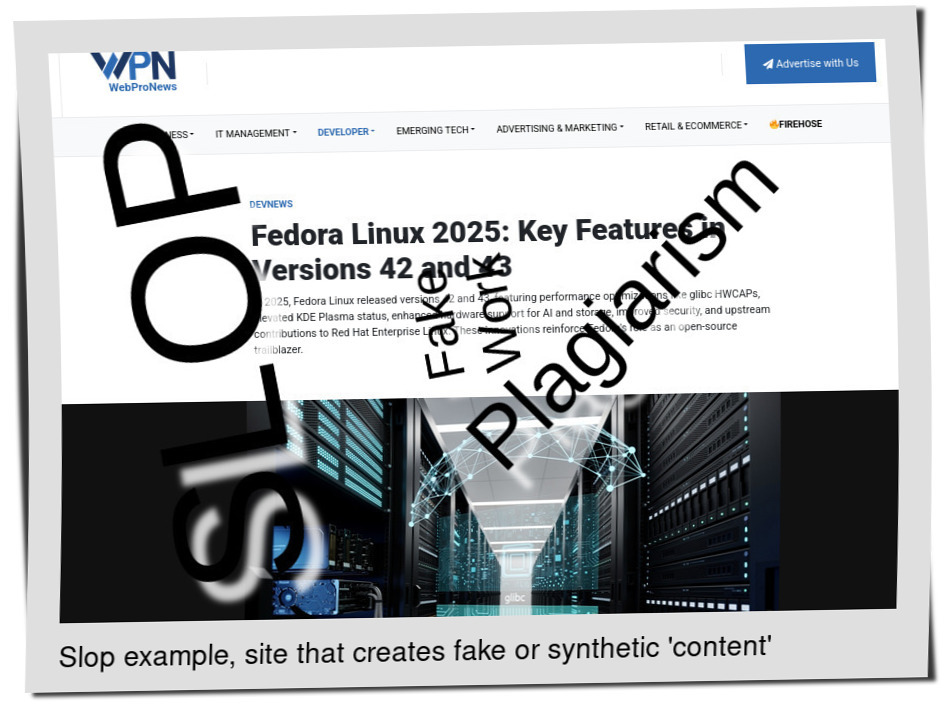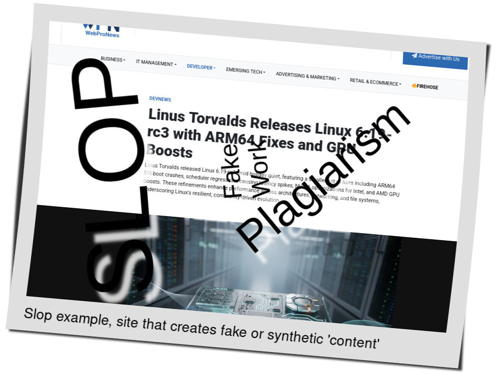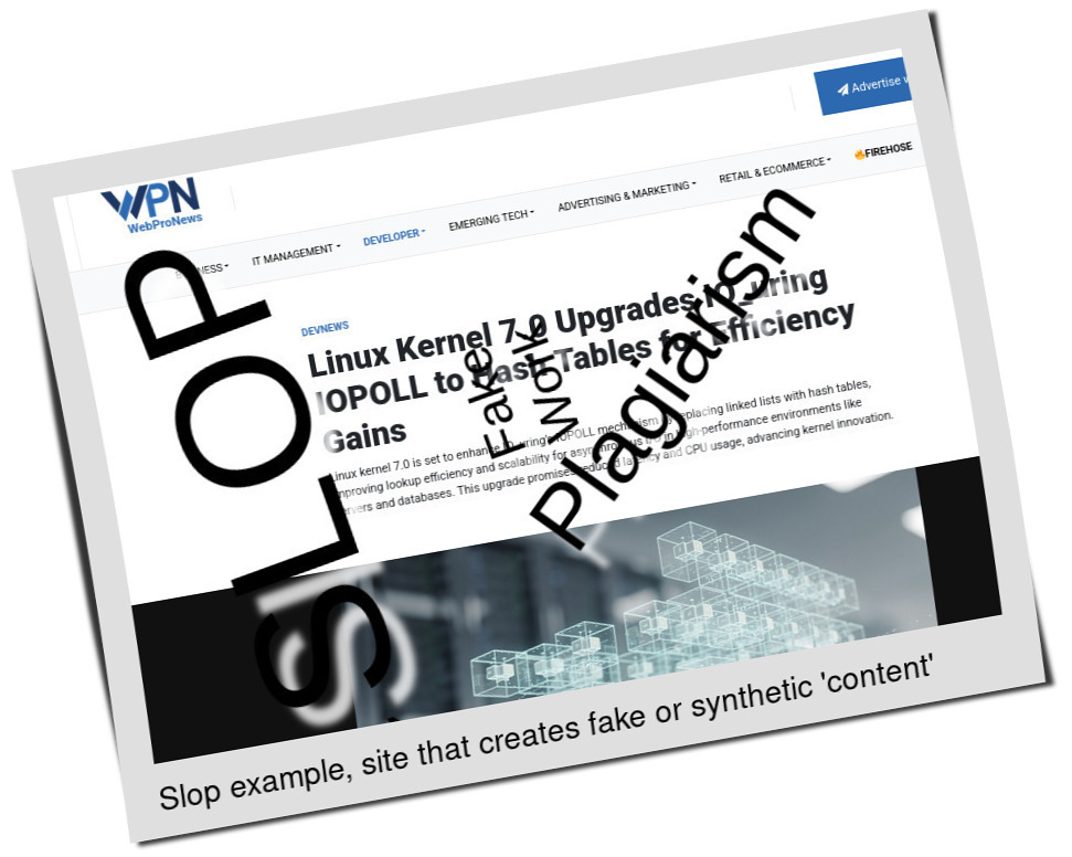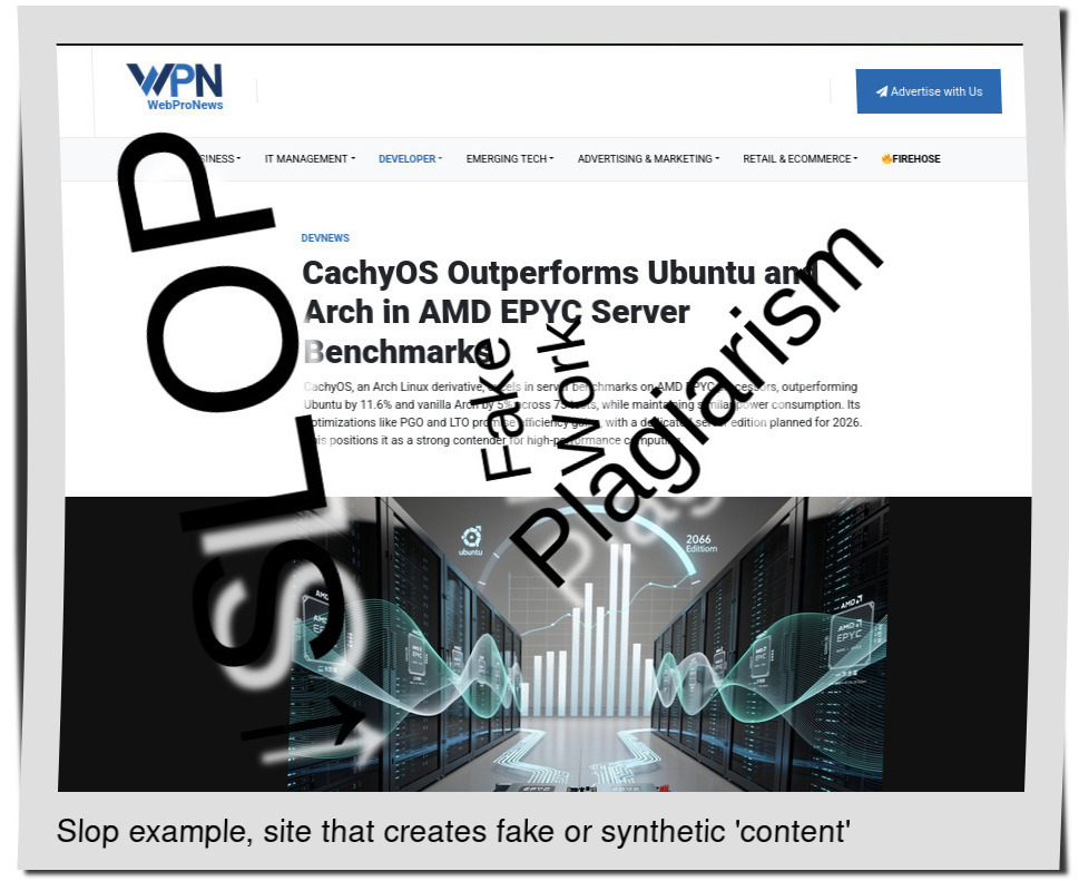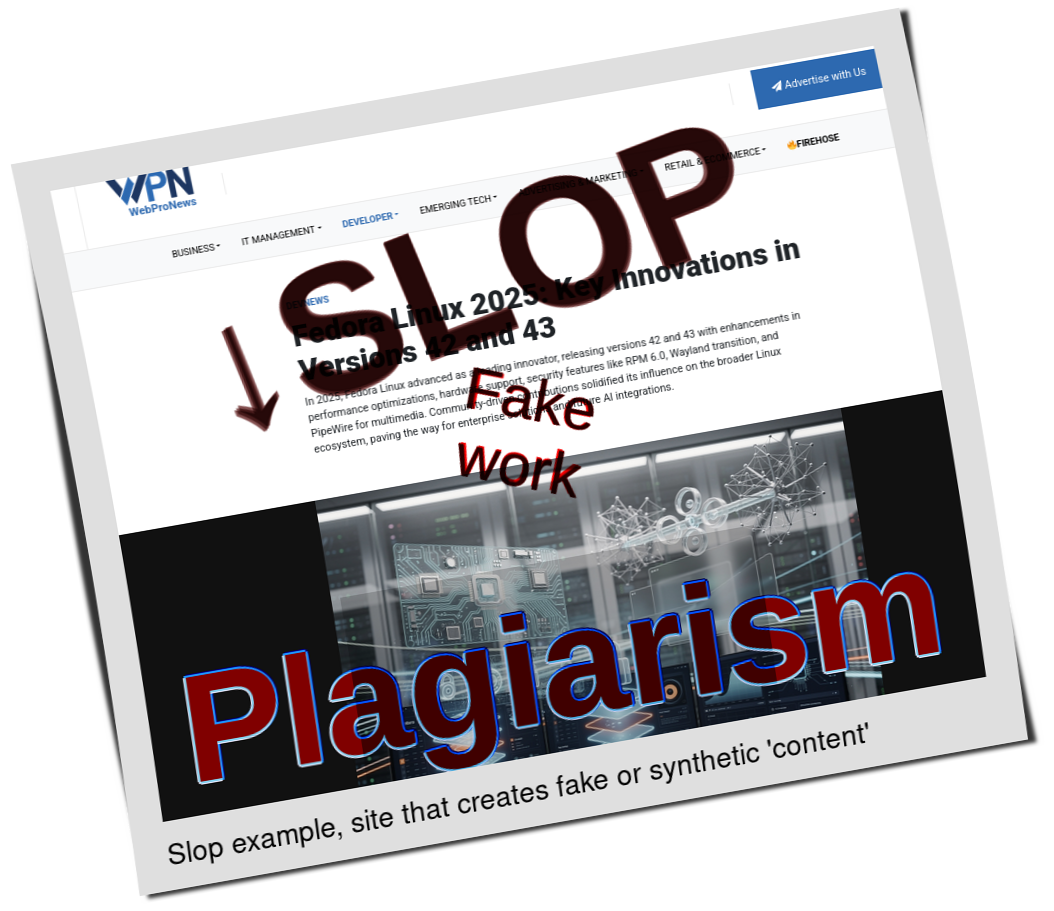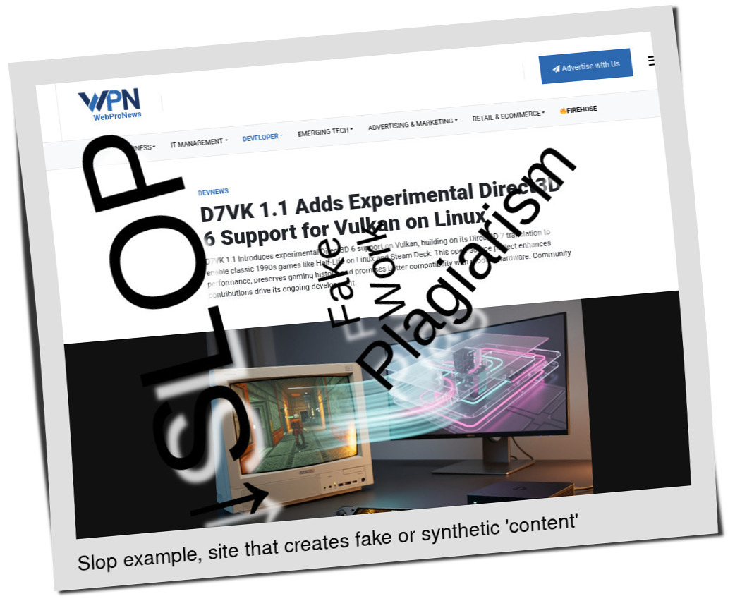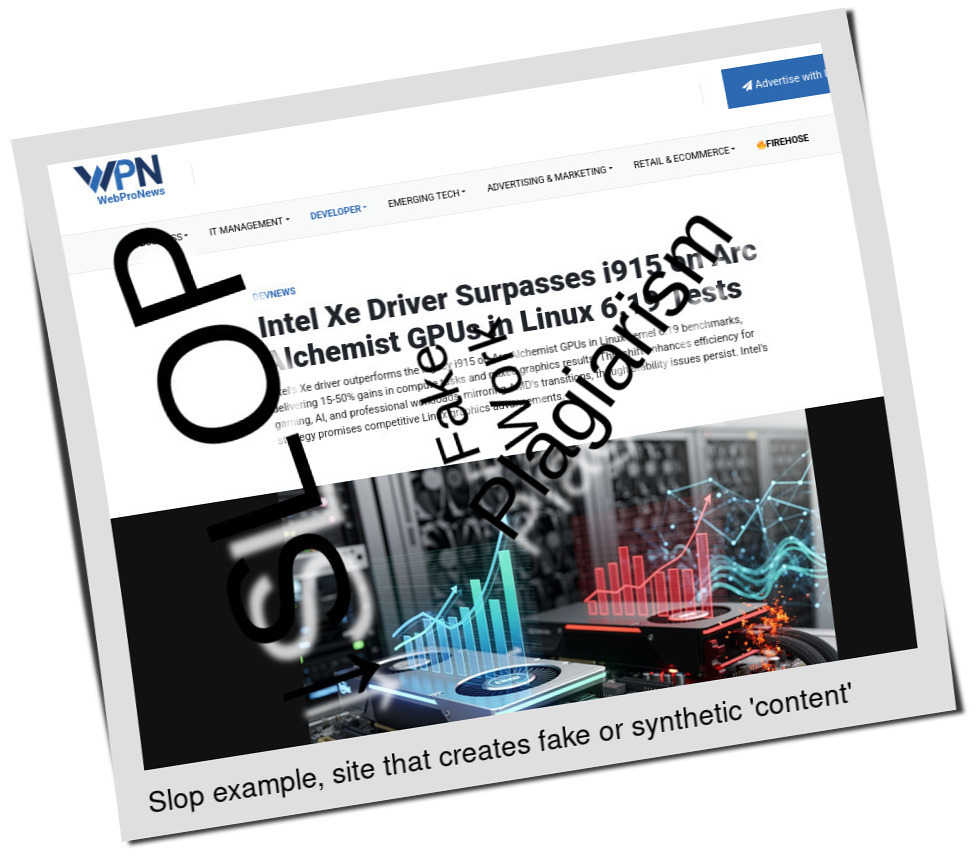 How does Phoronix feel about Google promoting slopfarms that 'rewrite' its stories and slap slop images on top? █