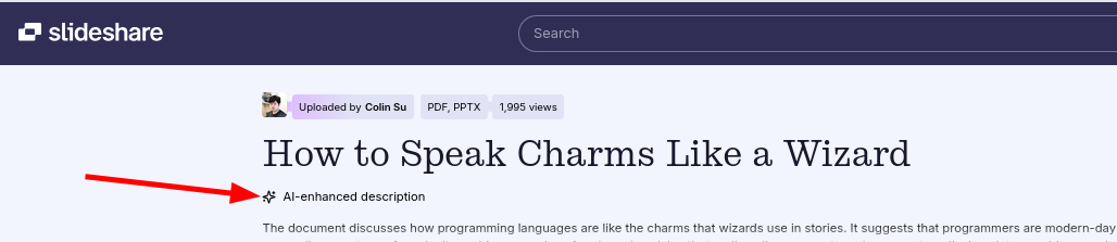 Trying to catch up with stupid, misguided trends, Slideshare recently added slop as "description":
