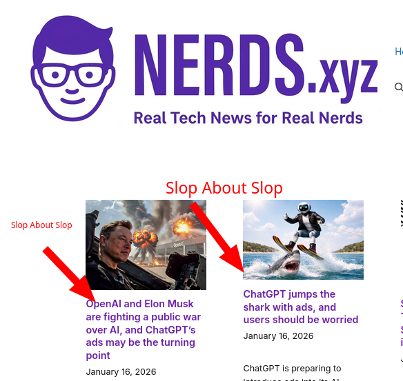 It's a mindless 'content farm' with slop about slop. The Serial Slopper helps a pyramid scheme.