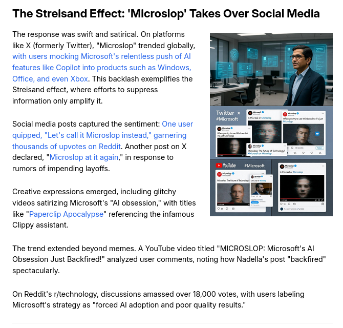Today: Microsoft's AI Advocacy Backfires: The Rise of 'Microslop' and Growing User Backlash (ironically, this seems to be a slopfarm)