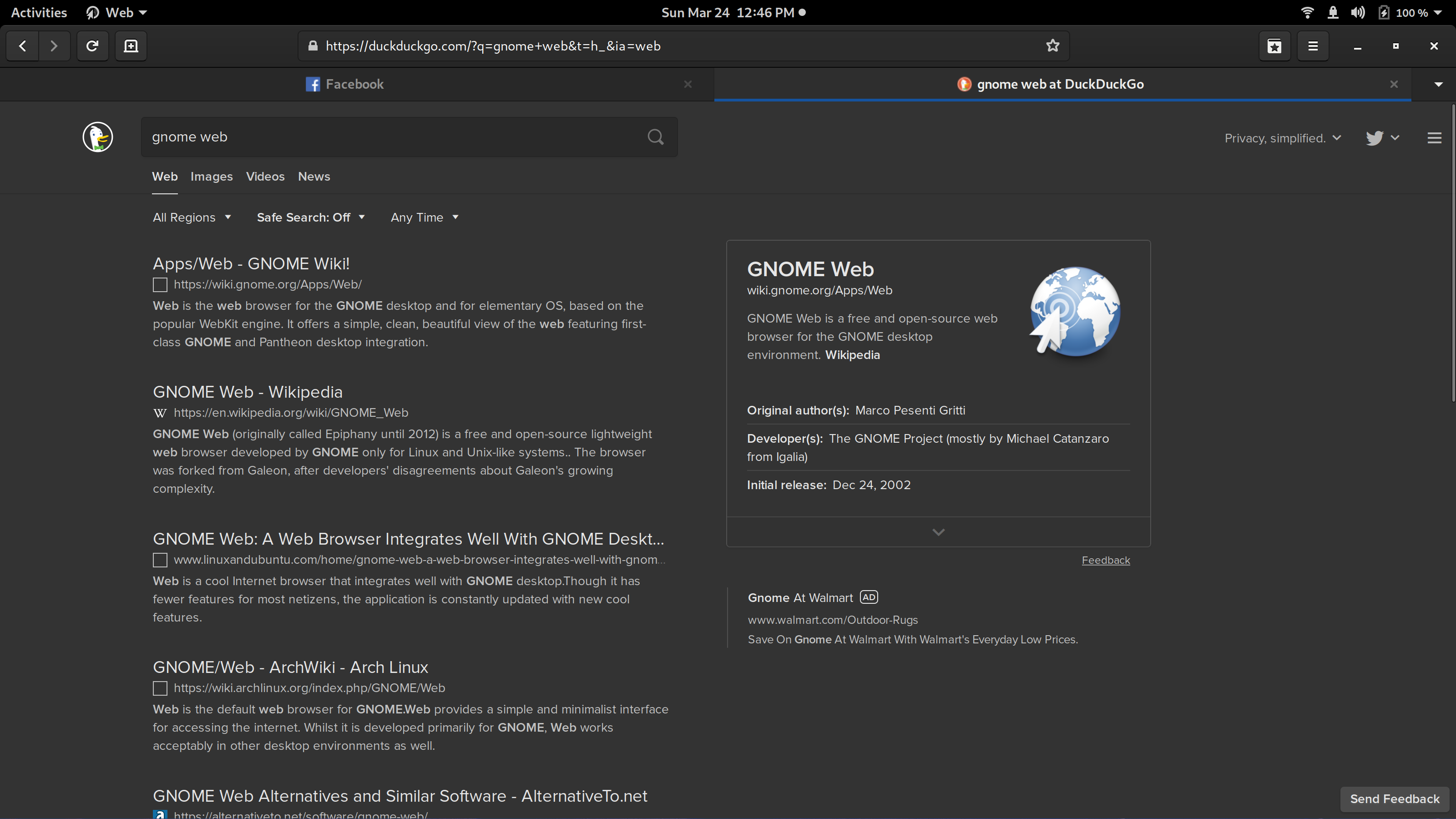 | DaemonFC[m] | Since Web uses Webkit2, each tab is a process of its own anyway | Mar 24 17:50 |