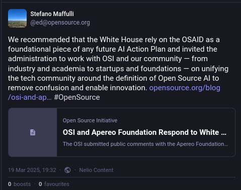 "Today I was sent a few links," the informant said. "When was Stefano on Mastodon requesting that the US government use their sad OSAID?"