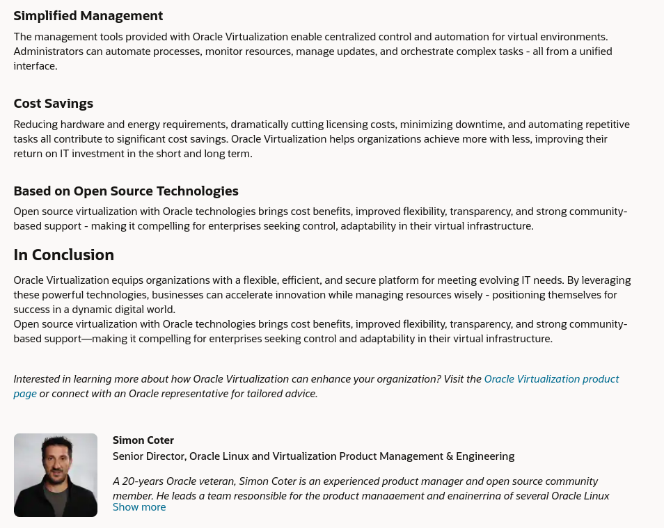 A few days ago Simon Coter published something entitled "Unlocking Efficiency & Flexibility while cutting costs: The Advantages of Oracle Virtualization" and it looked like this: