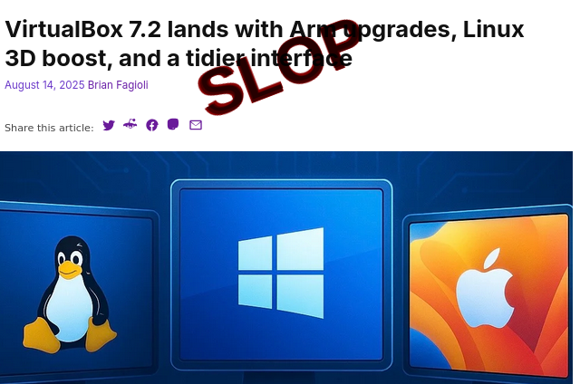 We've only just noticed that the Serial Slopper (SS), who was dumped by BetaNews, posted this slop-laden stuff, wherein both the image and the text are fake: