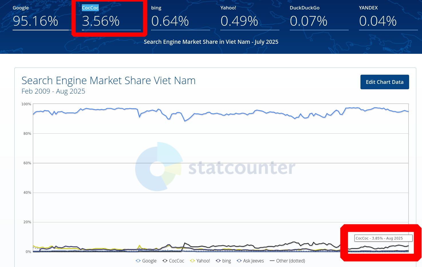 In Vietnam, Microsoft's Search Engine "Market Share" Fell to Almost 0%, CocCoc More Than 5 Times Bigger