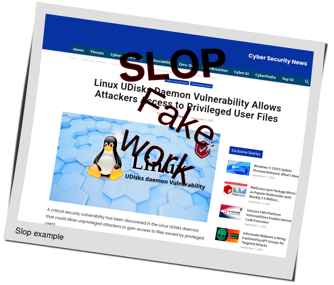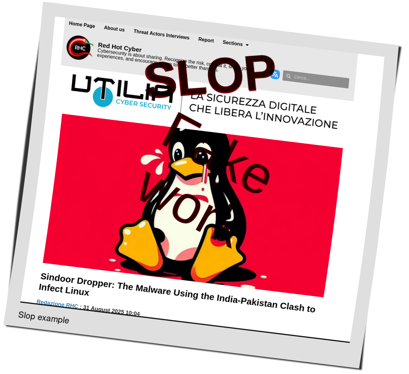 Boosted by Google News on a Sunday, Red Hot Cyber is recycling old FUD for some newer slop with LLMs and slop image generators: