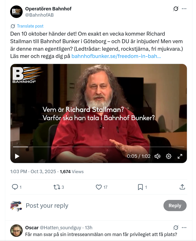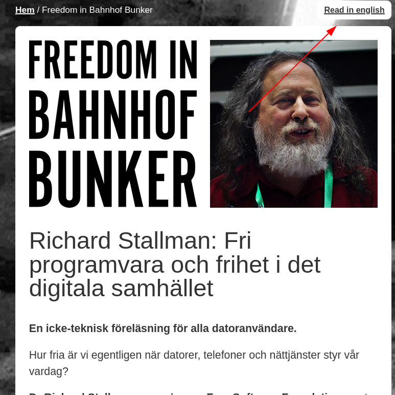 Richard Stallman Will Give a Talk in Sweden in 6 Days