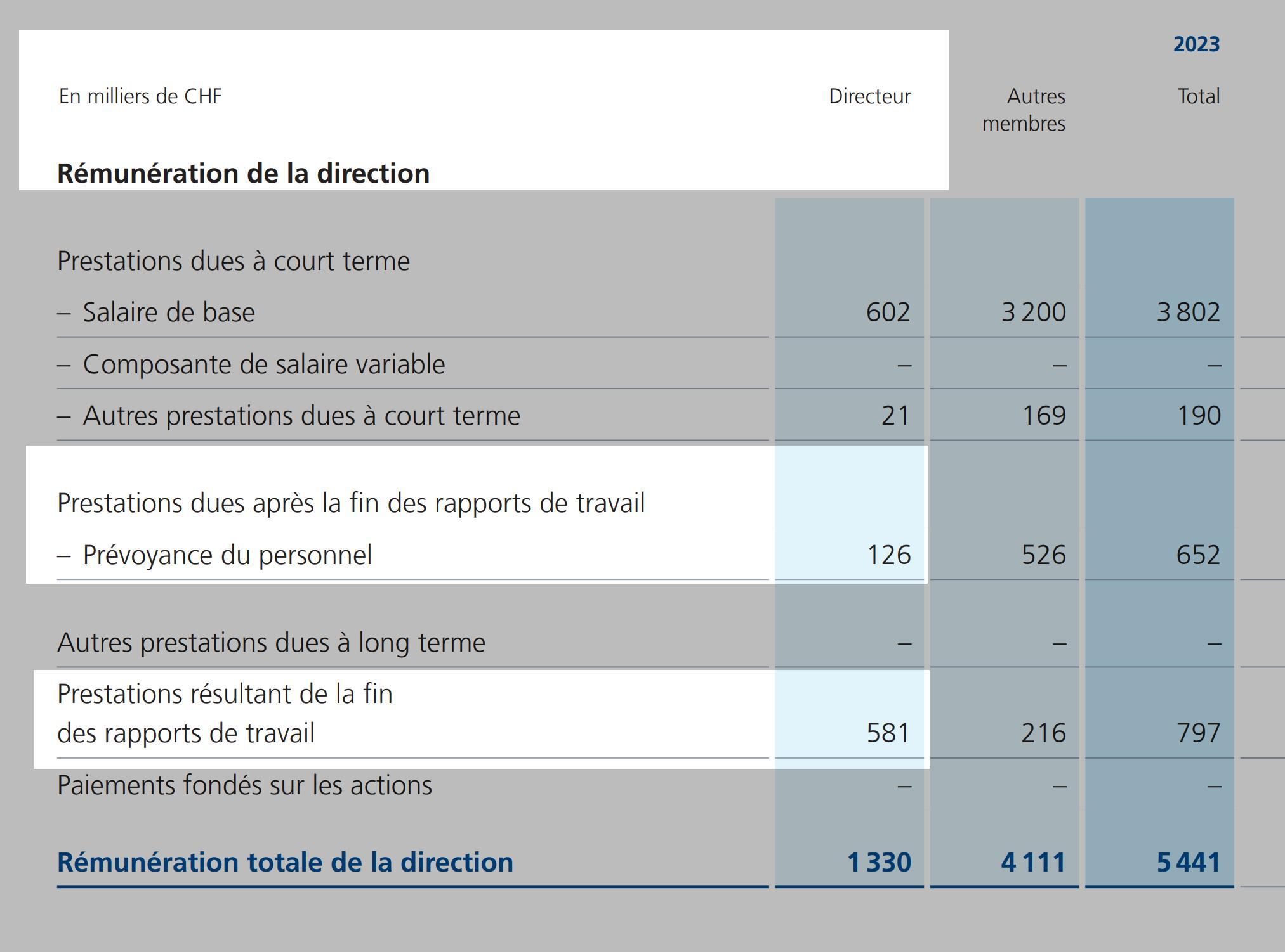 The FINMA financial accounts told us that the CEO received a payment of CHF 581,000 when he resigned for medical reasons. It is buried in the original accounts written in French.