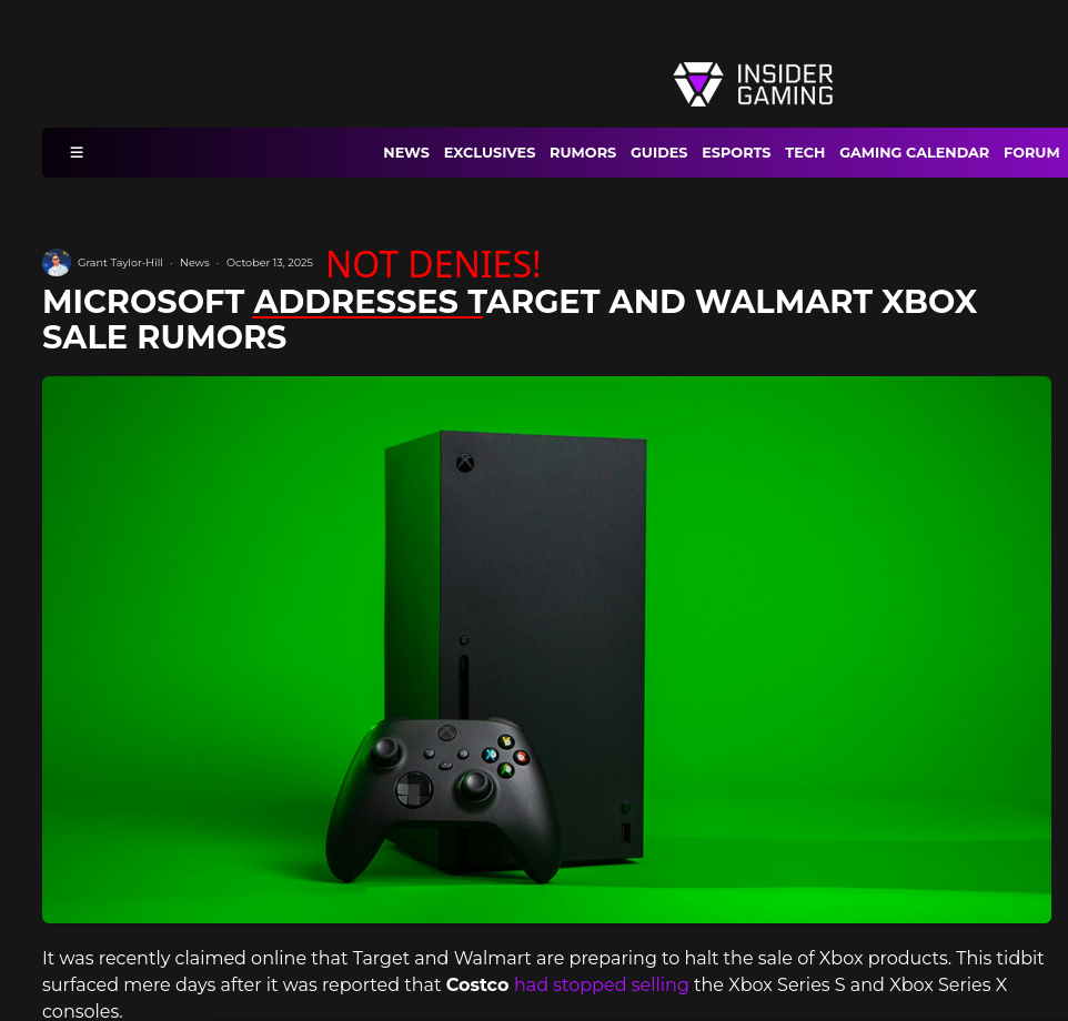 Microsoft Does Not Deny That Large Retailers Like Walmart, Costco and Target Are Giving Up on XBox (and Not Stocking It)
