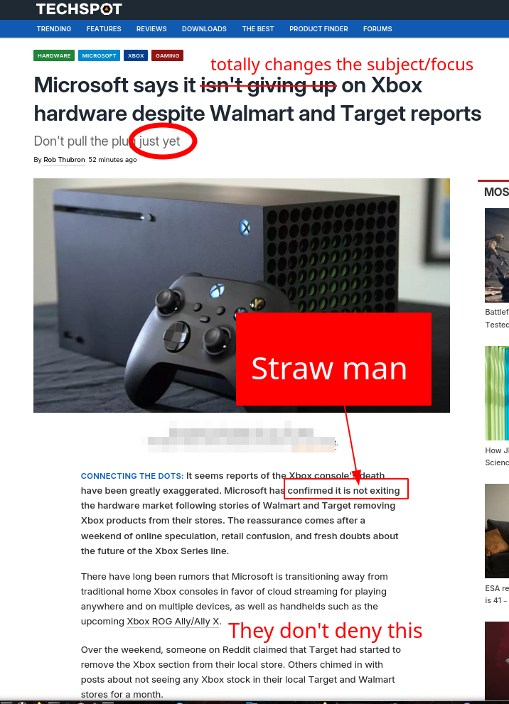 There are some shrewdly-worded articles today trying to 'debunk' what they do not in fact debunk; the reporting is defunct; they actually address or answer claims that almost nobody made. The crude fact is, some of the biggest retailers in the US - seeing that XBox barely sells (and Microsoft loses money on each unit sold) - are understocking or not stocking XBox consoles anymore. Some leap to the conclusion that therefore XBox is dead and then Microsoft says "not true"... at least NOT YET.