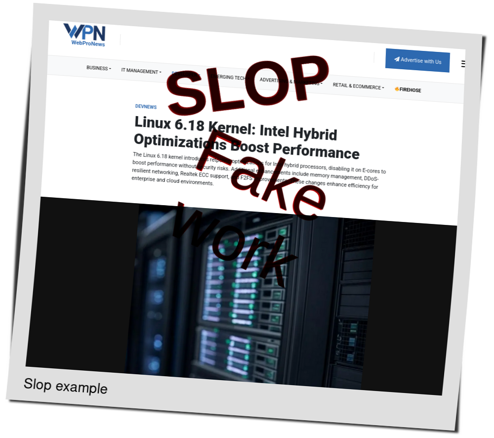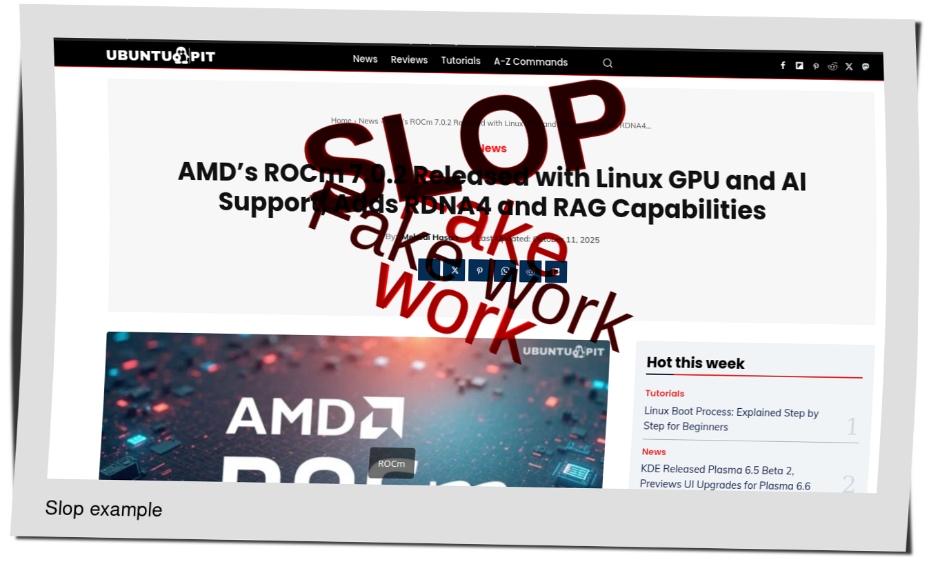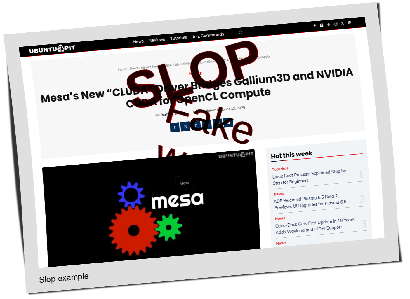 On another notes, Google News is absolutely littered with this slopfarm today: (lots of this is just plagiarism of Phoronix, with slop images and fake author names thrown into the mix)
