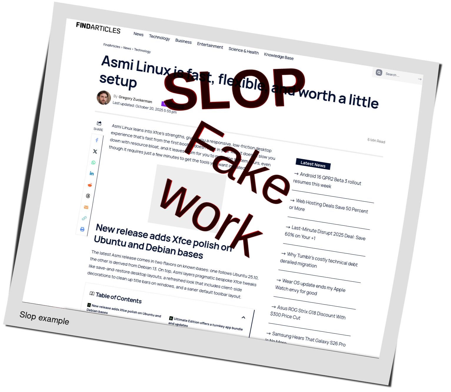 Hours later LLM slop and slop images targeted this article: