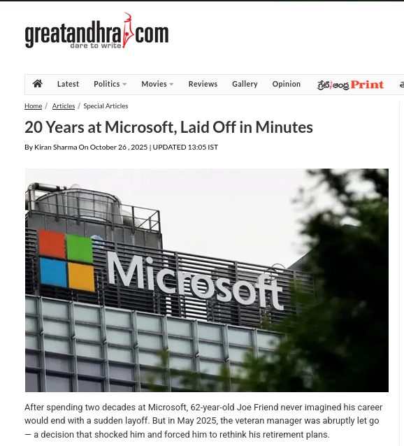 Over the weekend Business Insider published a report that many slopfarms have since then repeated with permutations. I saw over a dozen such permutations, which seem like state-of-the-art plagiarism (sold as "LLM" or "intelligence"). One slopfarm chose the headline "20 Years at Microsoft, Laid Off in Minutes!"