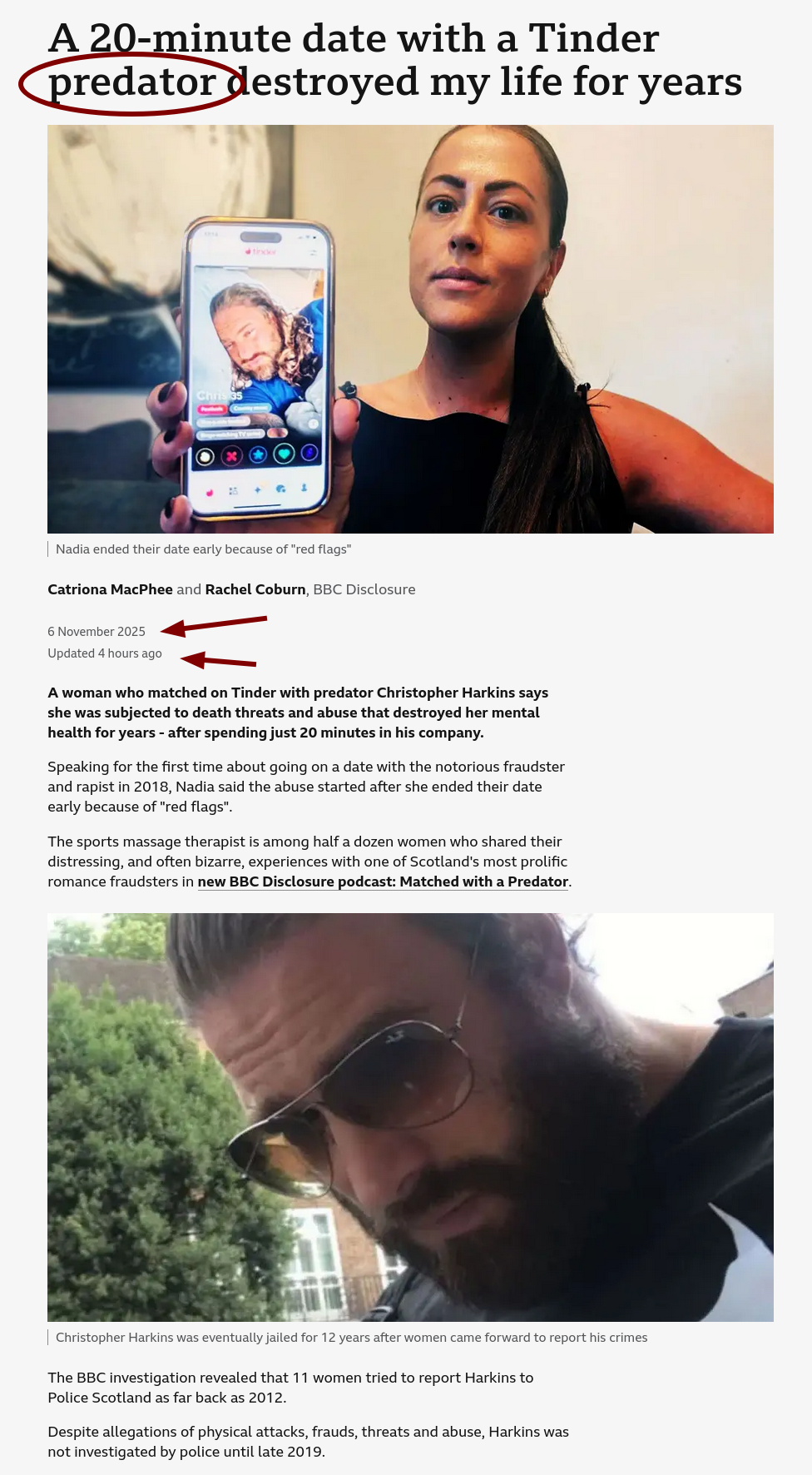 The national broadcaster, BBC, says that finally, at long last (in 2024), something happened. It says that Scottish police has finally arrested the man who was already reported to the police 12 years earlier. We couldn't help but think of a barrister and lawyer who work for a Microsoft employee arrested for strangulation.