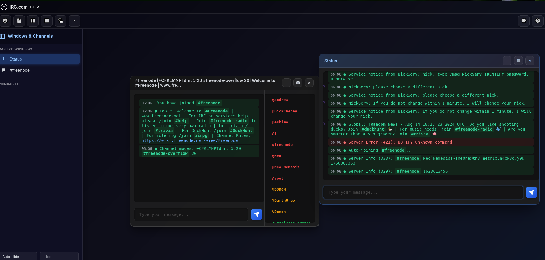 The GUI of irc.com is... interesting. It emulates retro terminals: