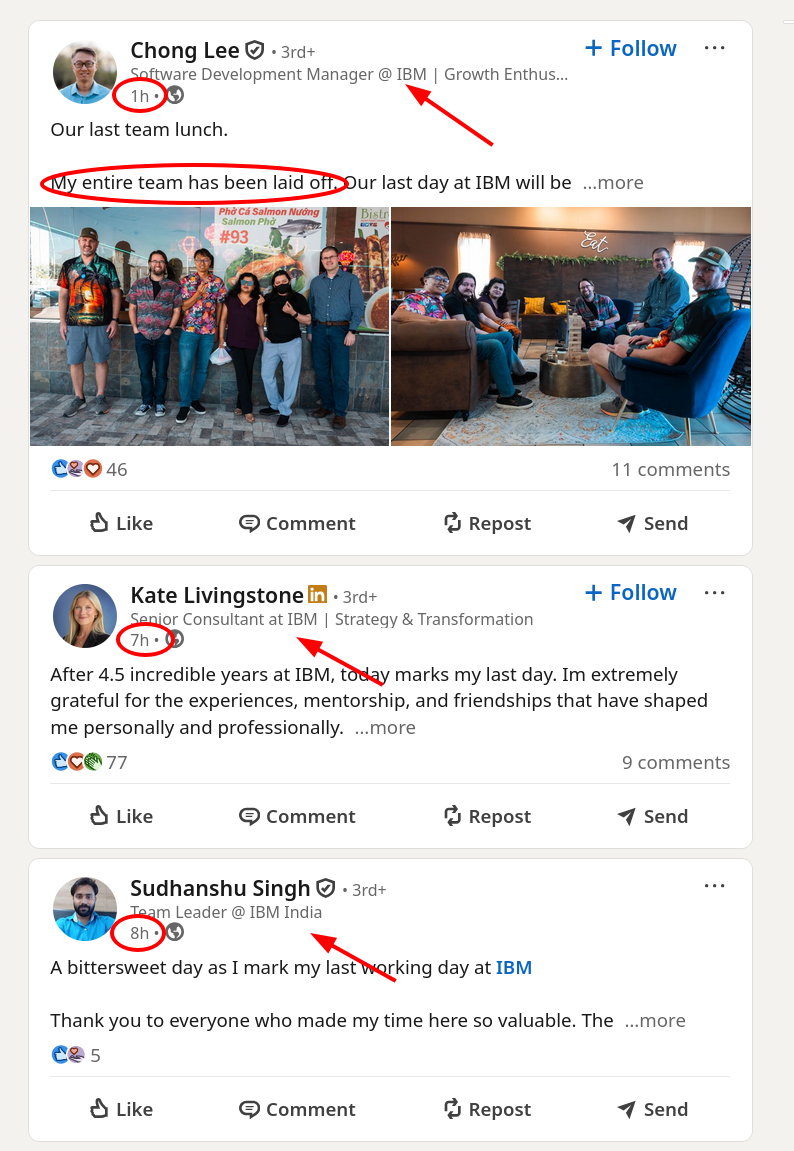 Also see: Claim That IBM Has Another 8 Days to Lay Off 'Expensive' Staff | Unverified Rumours: IBM Cuts Will Continue Another ~10 Days, Managers Will Invite Those Impacted for 1-on-1 Meetings
