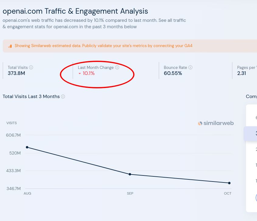 The traffic to the "Open" "AI" Web site is falling (ChatGPT is reportedly losing users too, usage is declining), GPT-5 was a giant failure, and there's no turning point.