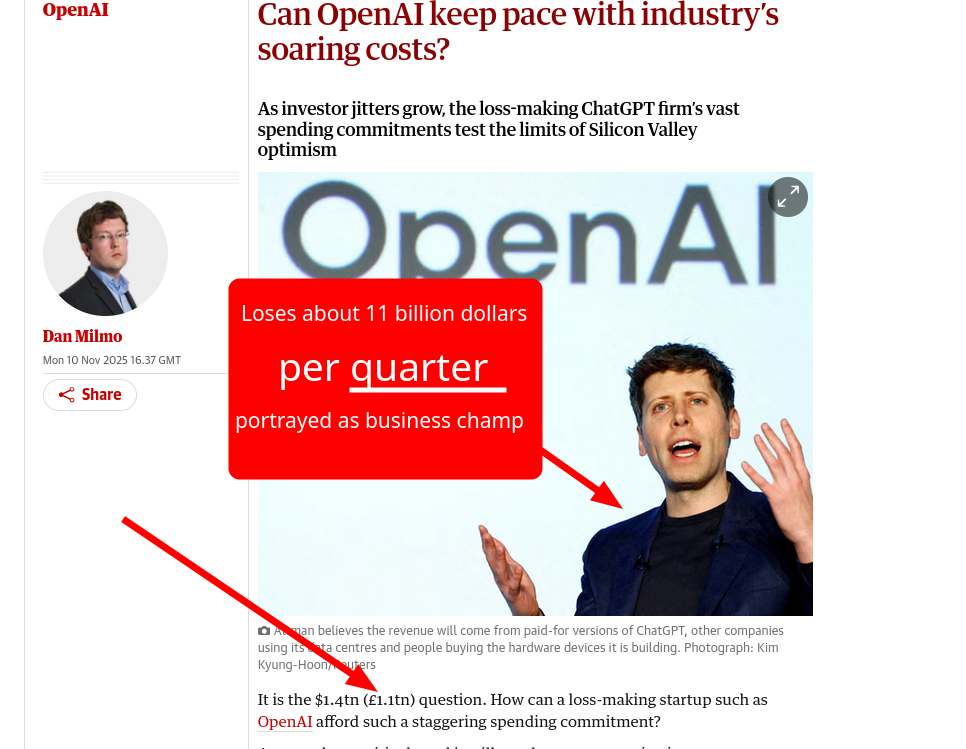In 2022 and 2023 Cory Doctorow was one among many who asserted "AI" was a bubble. Prior to that, even back in 2020, we kept saying it was a misnomer, a buzzword, basically false marketing and catalyst of fake news (like a lot of what we currently see about grossly-overrated "quantum"). Microsoft had TV advertisements for "AI" even before all that ChatGPT frenzy (manufactured 'reporting', paid-for puff pieces). It wasn't even clear what Microsoft was trying to say or what it meant by that, but Windows was waning (in 2021 Vista 11 came out and almost nobody adopted it). Microsoft was desperate for some hype, just like Apple with Vision Pro (iPhone sales have declined for years), Facebook with "metaverse" (even rebranding as "Meta"), and Tesla the scam factory with faked "full autopilot" videos.