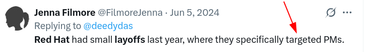 That was last year. They tried to keep quiet about it. IBM's bluewashing of Red Hat means that Red Hat (as a "company" with a Web site) will probably never announce layoffs again. █