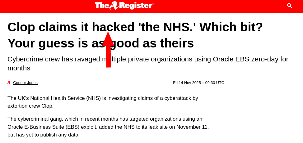 The Register MS says that a "cybercriminal gang" has taken data from the NHS. But who inside the NHS deployed Oracle E-Business Suite (EBS), Windows, and all sorts of systems with back doors and no warranty? Who will be held accountable?