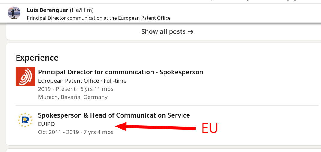 With the exception of Brimelow, everyone running the Office was French. Considering the ambition of Campinos to secure a third term, we're looking at French people in charge of the Office for almost 27 years in 30-year period. How's that for diversity [1, 2]?