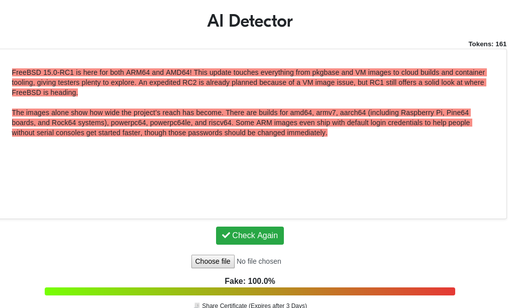 Elsewhere, the Serial Slopper is making slop about the availability of FreeBSD 15.0-RC1: