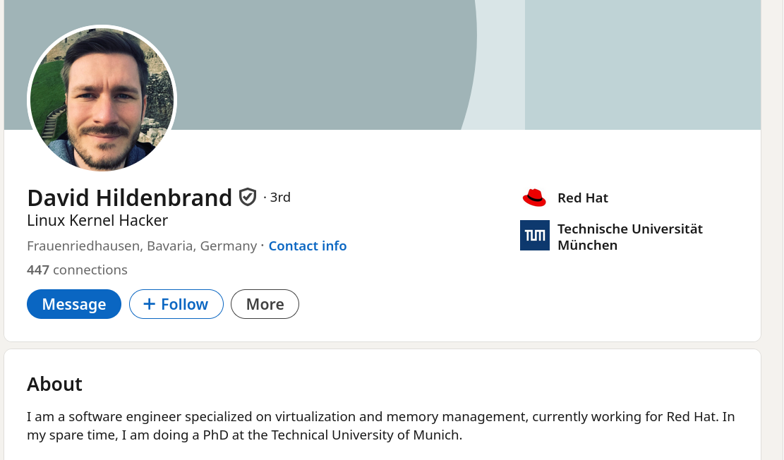 As Phoronix put it - and it was down for much of the day due to Clownflare (Cloudflare) - "David Hildenbrand landed a patch into yesterday's Linux 6.18-rc6 kernel that acknowledges his departure soon from Red Hat."