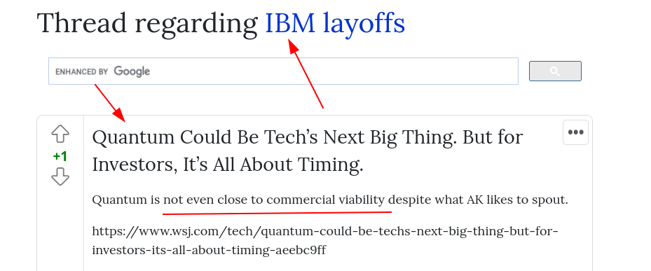 The only comments there are brutal: "Too early is any time in the next 30 years. NISQC has no future and exists mainly to generate press releases and attract funding. The problem is we have absolutely no idea how to build what comes next." 1 hour ago by another anonymous: "We can't even build a working quantum computer and it's the next best thing? Lol"