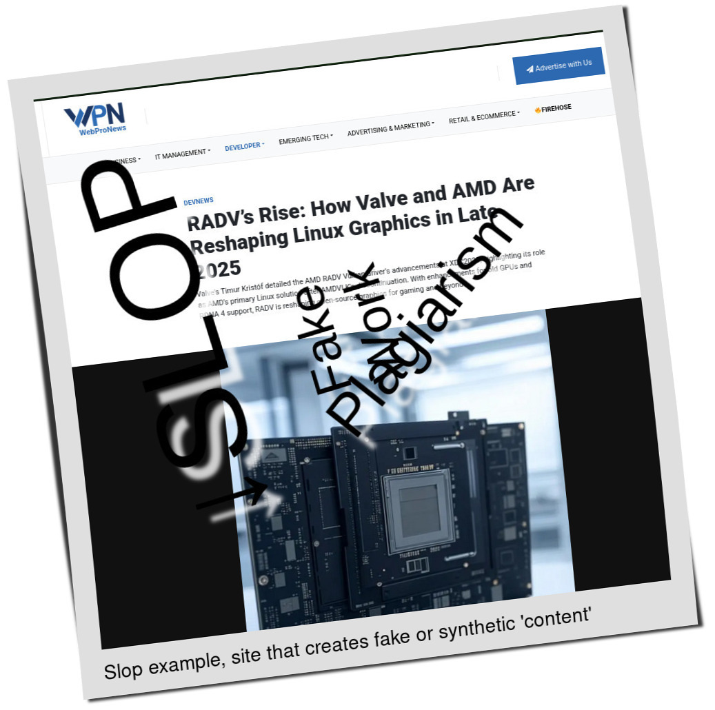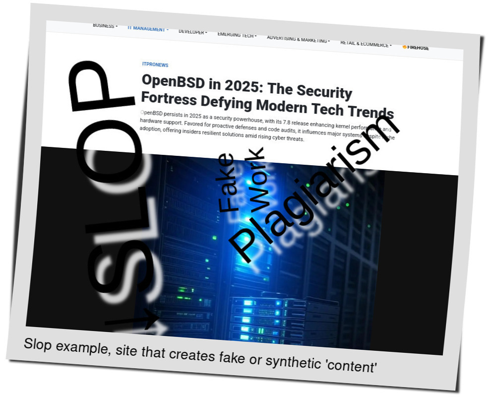 So in one single say this slopfarm has managed to "invade" Google News in relation to "bsd" or "linux" at least 7 times. Why does Google News allow it? █